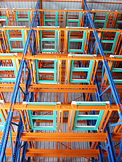 可依棧板型式做各種設計、適合多量少樣物料存放